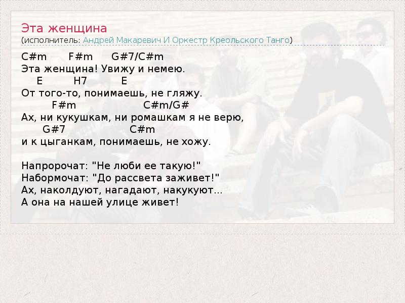 А как ты думаешь, о чем песня "Эта женщина" ?