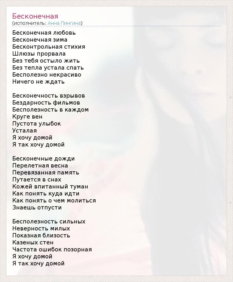 А как ты думаешь, о чем песня "Бесконечная" ?