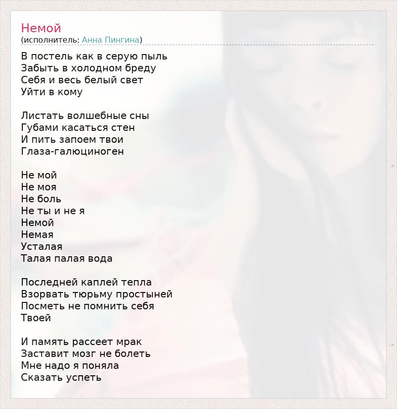 Это интересно:Анна Пингина (Anna Pingina) – певица, актриса, автор песен, лидер и основатель собственного коллектива."Современная музыка с корневой основой".Родилась в г. Армавире на Кубани. Петь начала в раннем детстве, подпевая виниловым пластинкам, писать - с 13 лет.В 1996 году, после Юридического техникума, Анна поступила на отделение «Актер музыкального театра» в Краснодарского музыкального... продолжение