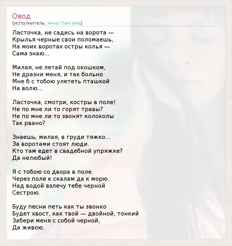 Это интересно:Анна Пингина (Anna Pingina) – певица, актриса, автор песен, лидер и основатель собственного коллектива."Современная музыка с корневой основой".Родилась в г. Армавире на Кубани. Петь начала в раннем детстве, подпевая виниловым пластинкам, писать - с 13 лет.В 1996 году, после Юридического техникума, Анна поступила на отделение «Актер музыкального театра» в Краснодарского музыкального... продолжение
