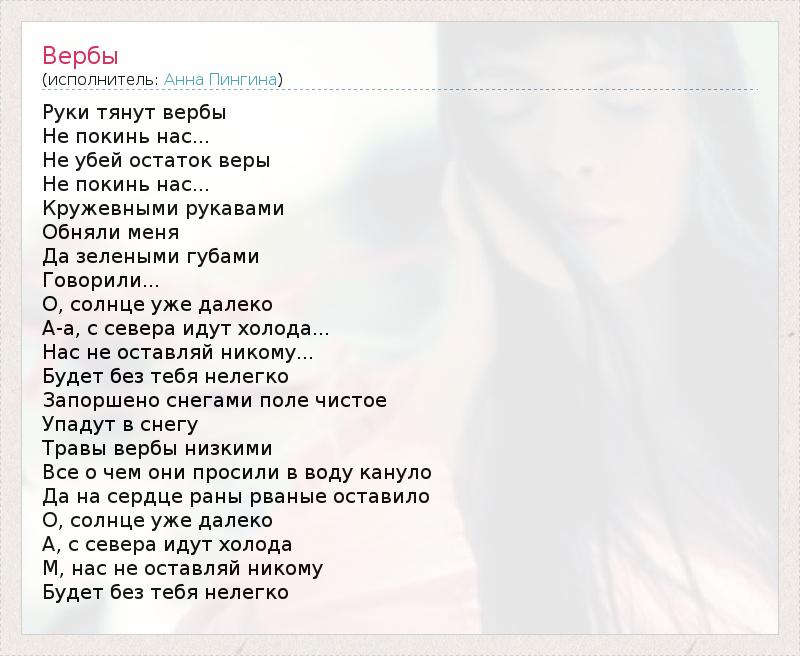 А как ты думаешь, о чем песня "Вербы" ?