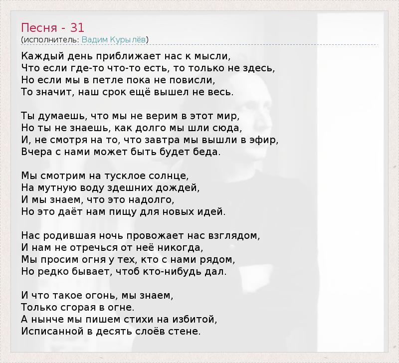 А как ты думаешь, о чем песня "Песня - 31" ?