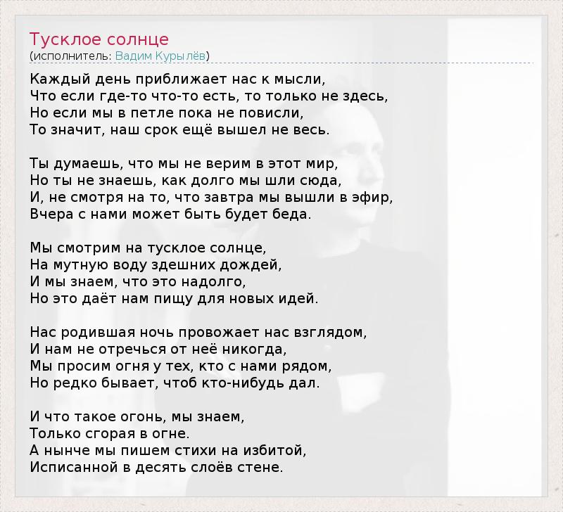 А как ты думаешь, о чем песня "Тусклое солнце" ?