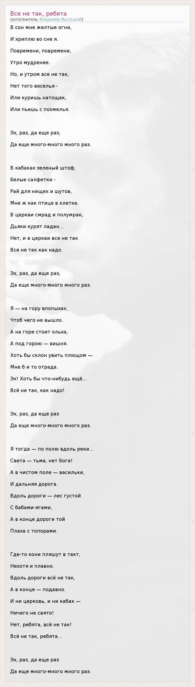 А как ты думаешь, о чем песня "Все не так, ребята" ?
