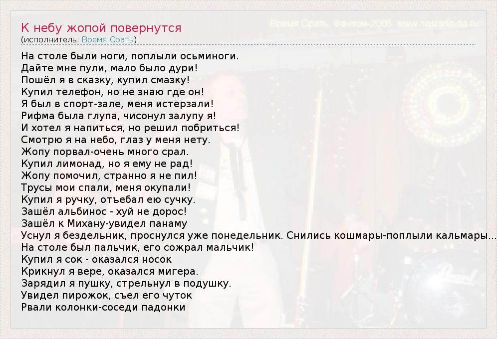 А как ты думаешь, о чем песня "К небу жопой повернутся" ?