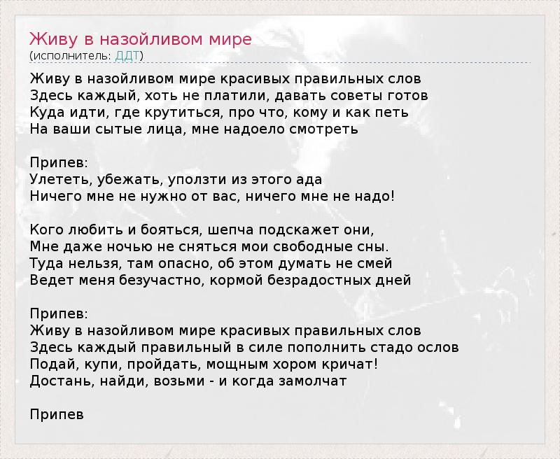 ГлавнаяИсполнителиДДТЖиву в назойливом мире
