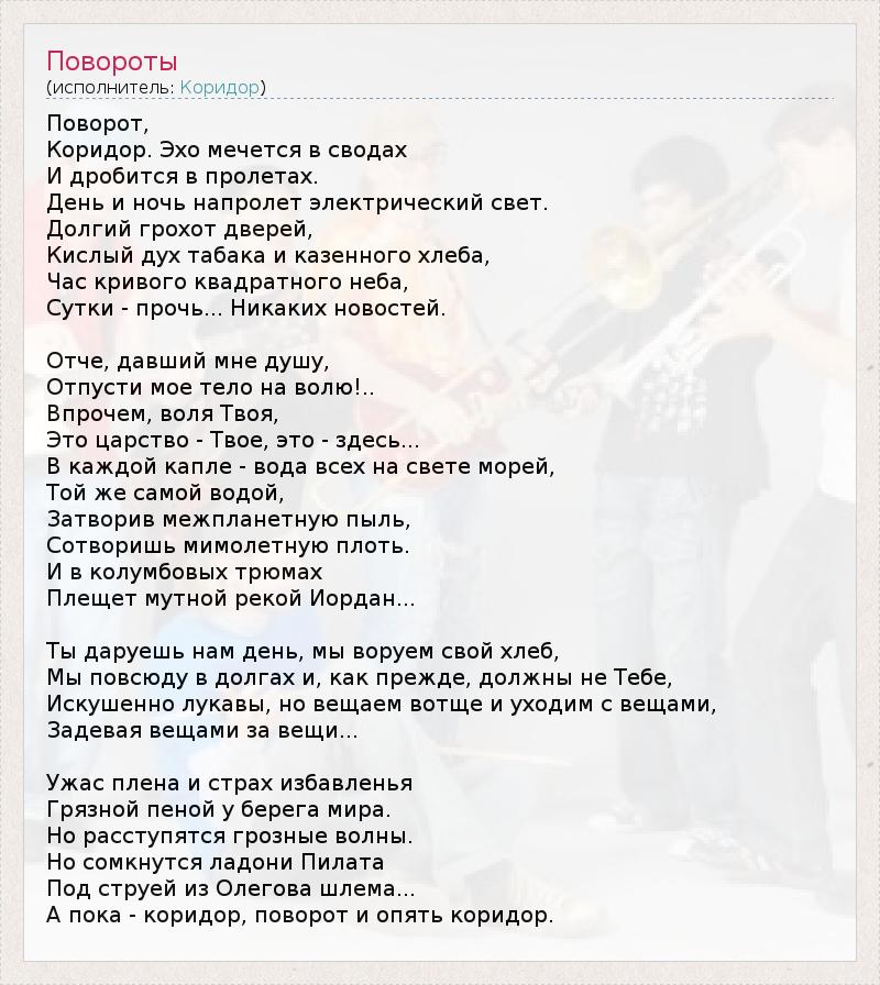 Это интересно:Вообще-то, логика требует поместить здесь более-менее подробный рассказ о неизменном солисте и главном действующем лице "Коридора" Алексее Костюшкине (в жизни желательно просто Леха). Но так как это личность неординарная, то данный очерк немного расширяет свои функции и предстает пред Благосклонным Читателем как "История группы" (а не просто так рассказ). Причина этому как... продолжение