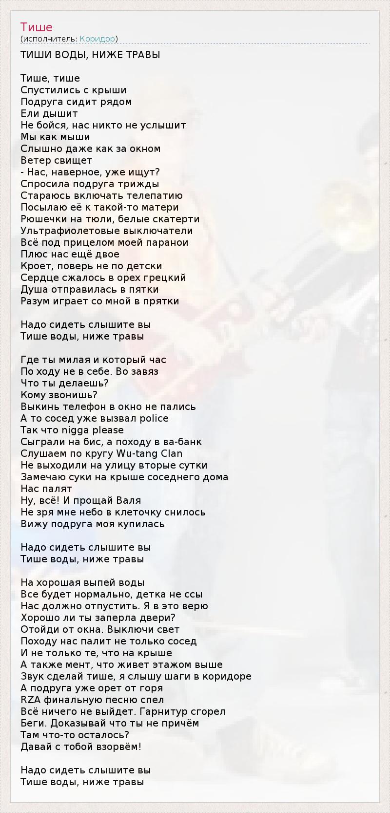 А как ты думаешь, о чем песня "Тише" ?