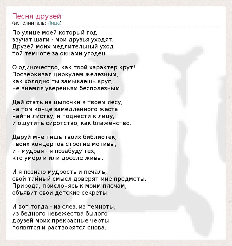 Это интересно:Если вы слушаете хип-хоп группу "Лица" ,просьба тегать так: "Группа Лица".Группа ЛИЦ@ родилась на осколках двух групп: Post Scriptum и Полная Неизвестность.На дворе стояла ранняя осень 2004…Саня «А.А.» Ададуров и Вовчик «Пропан» Добрицкий, а так же Андрей «Зай» Зайцев, решили вместе начать делать качественную, можно даже сказать, профессионально аранжированную, музыку.Пока... продолжение