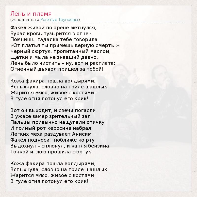 А как ты думаешь, о чем песня "Лень и пламя" ?