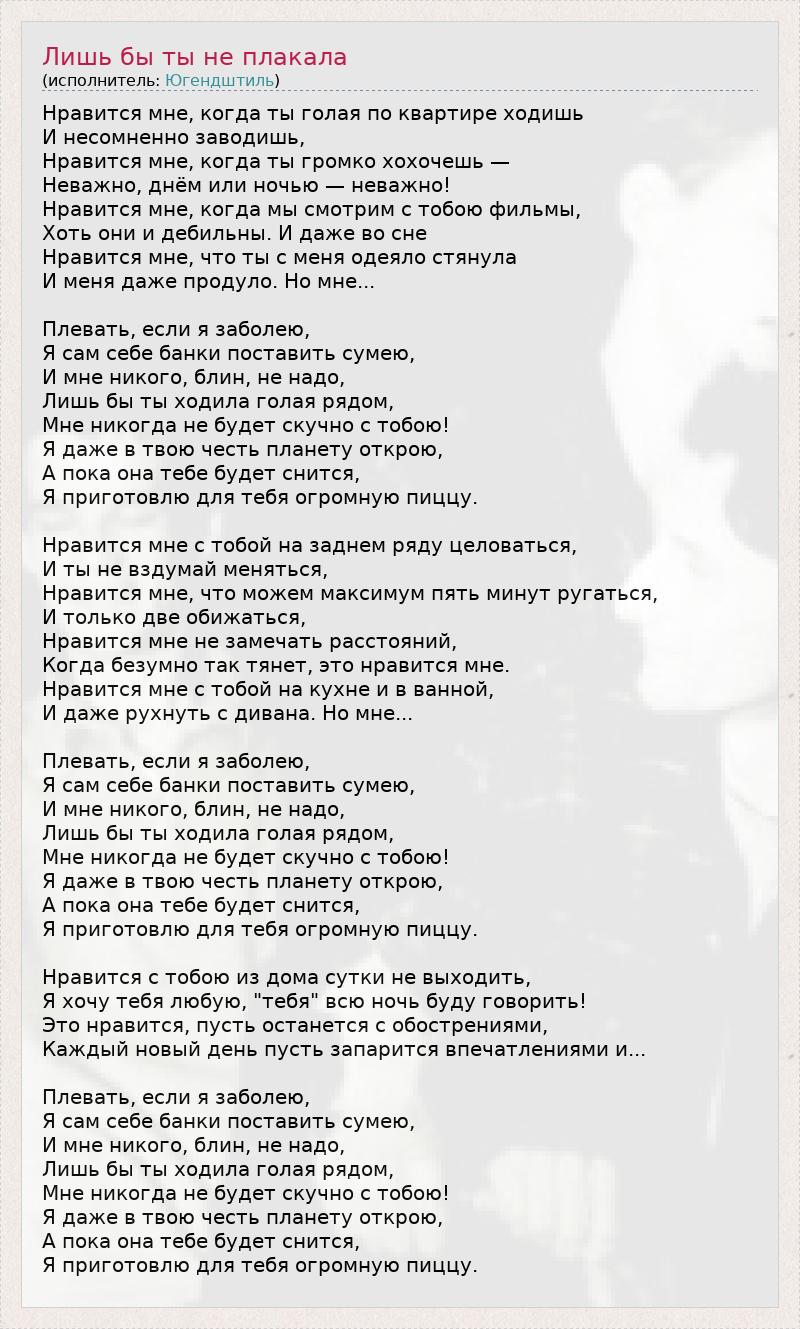 ГлавнаяИсполнителиЮгендштильЛишь бы ты не плакала
