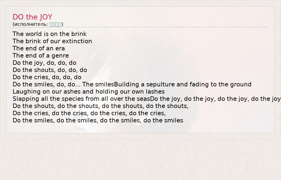 А как ты думаешь, о чем песня "DO the JOY" ?