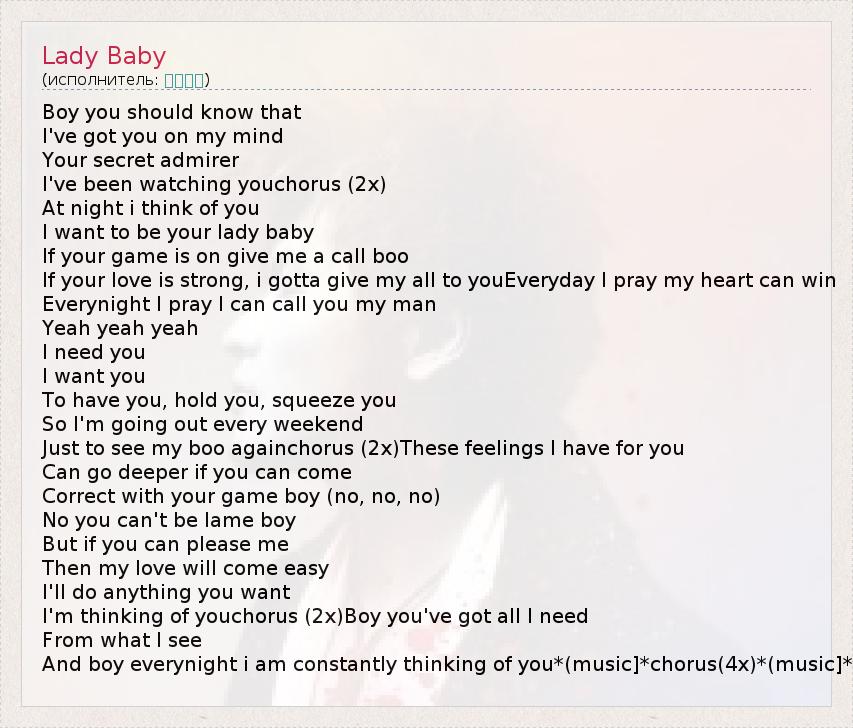 А как ты думаешь, о чем песня "Lady Baby" ?