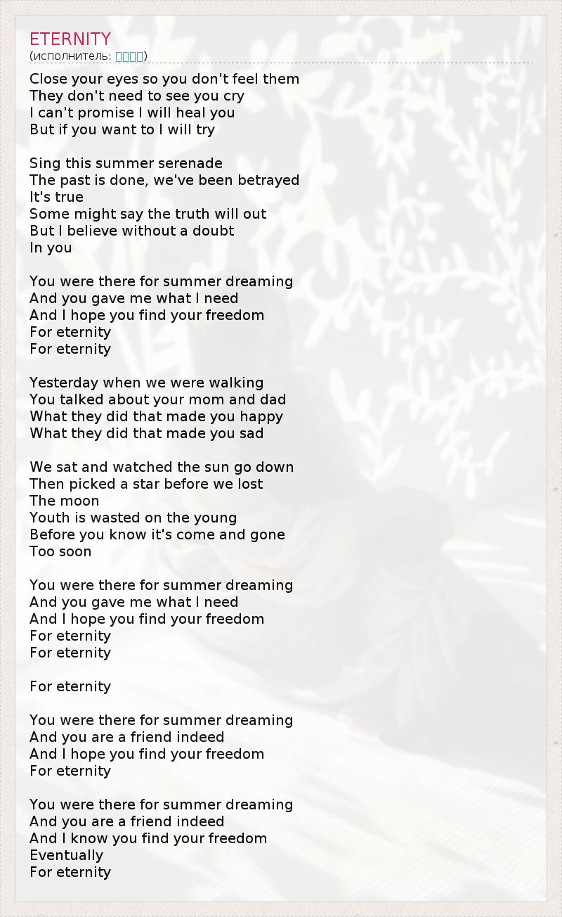 А как ты думаешь, о чем песня "ETERNITY" ?