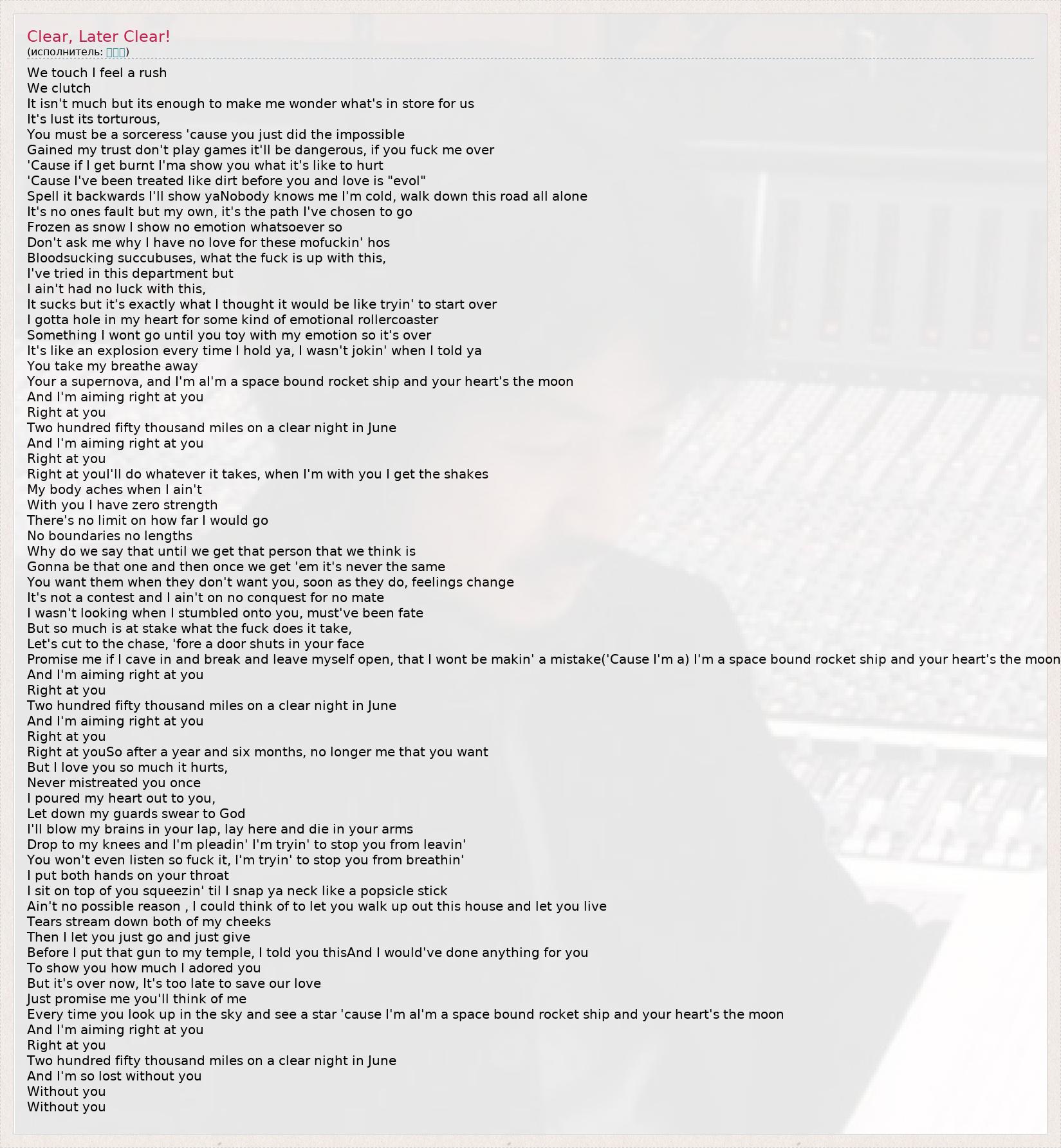 А как ты думаешь, о чем песня "Clear, Later Clear!" ?