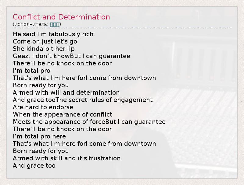 А как ты думаешь, о чем песня "Conflict and Determination" ?