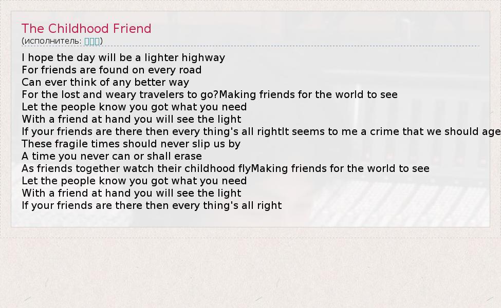 А как ты думаешь, о чем песня "The Childhood Friend" ?