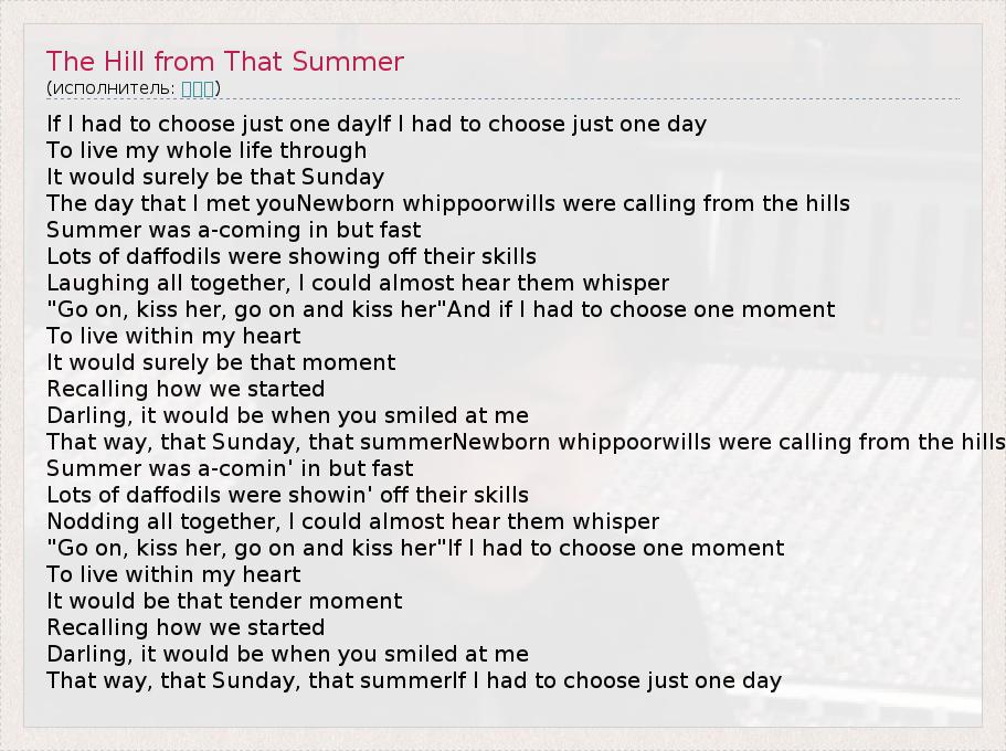 А как ты думаешь, о чем песня "The Hill from That Summer" ?