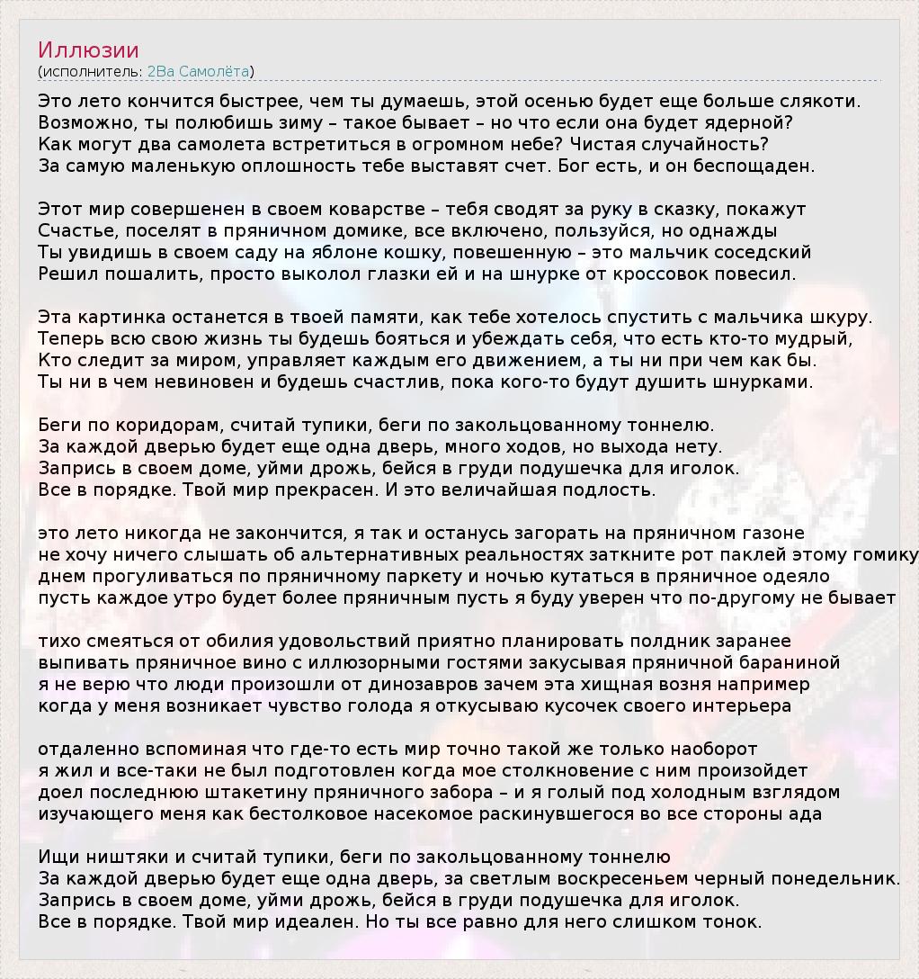 А как ты думаешь, о чем песня "Иллюзии" ?