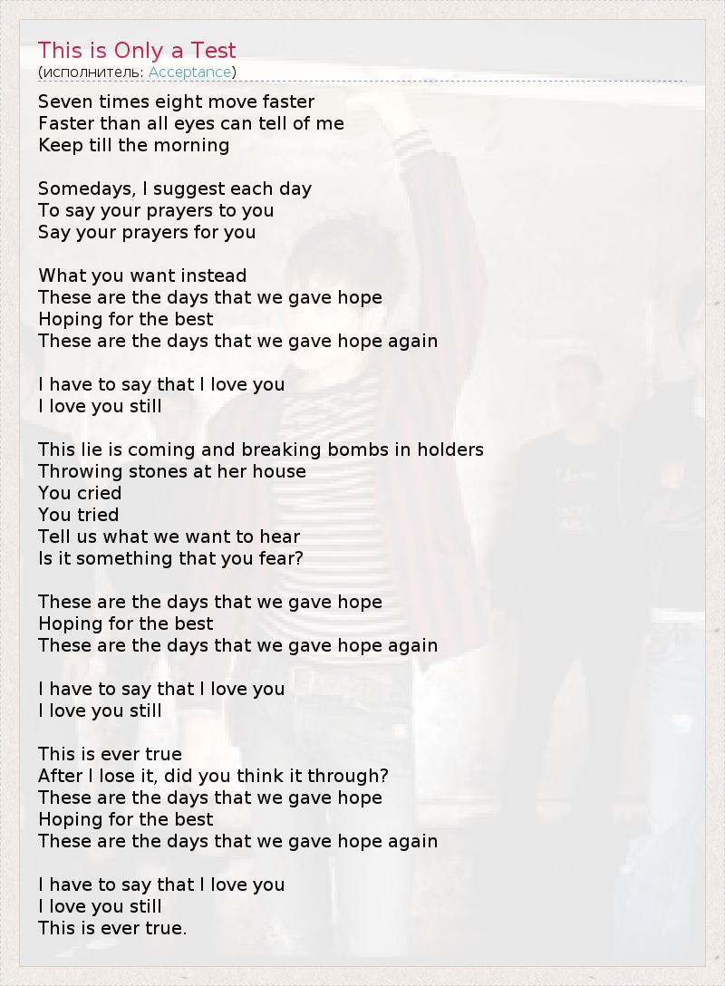 А как ты думаешь, о чем песня "This is Only a Test" ?
