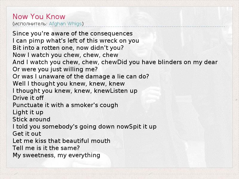 And I watch you chew, chew, chewDid you have blinders on my dear
