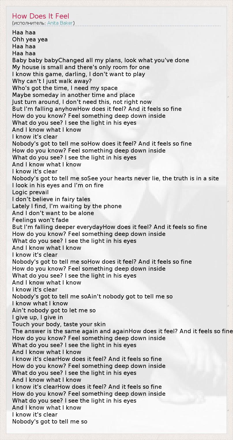 Nobody's got to tell me soHow does it feel? And it feels so fine
