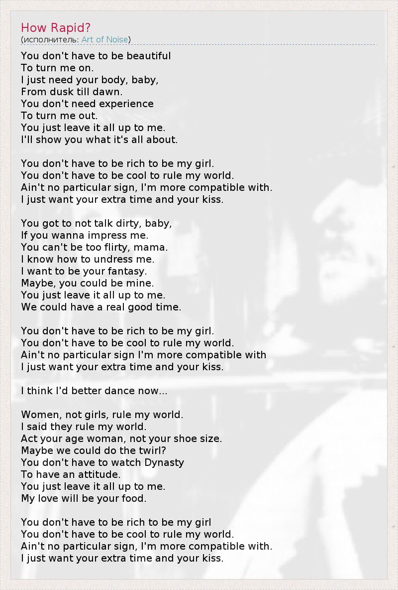 Тебе не нужно быть богатой, чтобы быть моей девушкой.