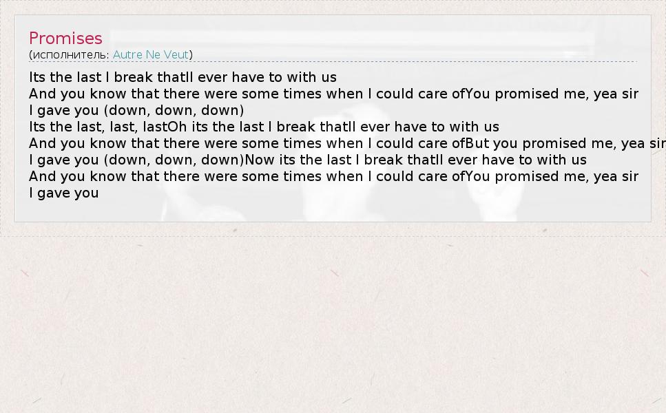 And you know that there were some times when I could care ofBut you promised me, yea sir