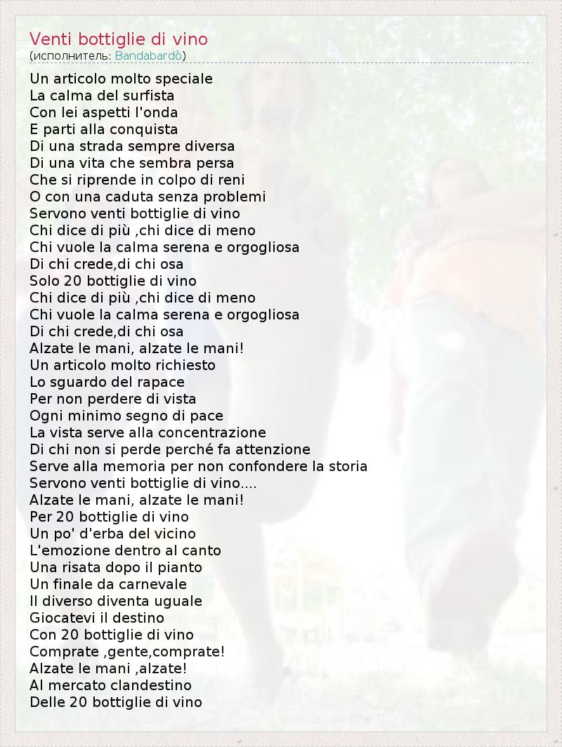 А как ты думаешь, о чем песня "Venti bottiglie di vino" ?