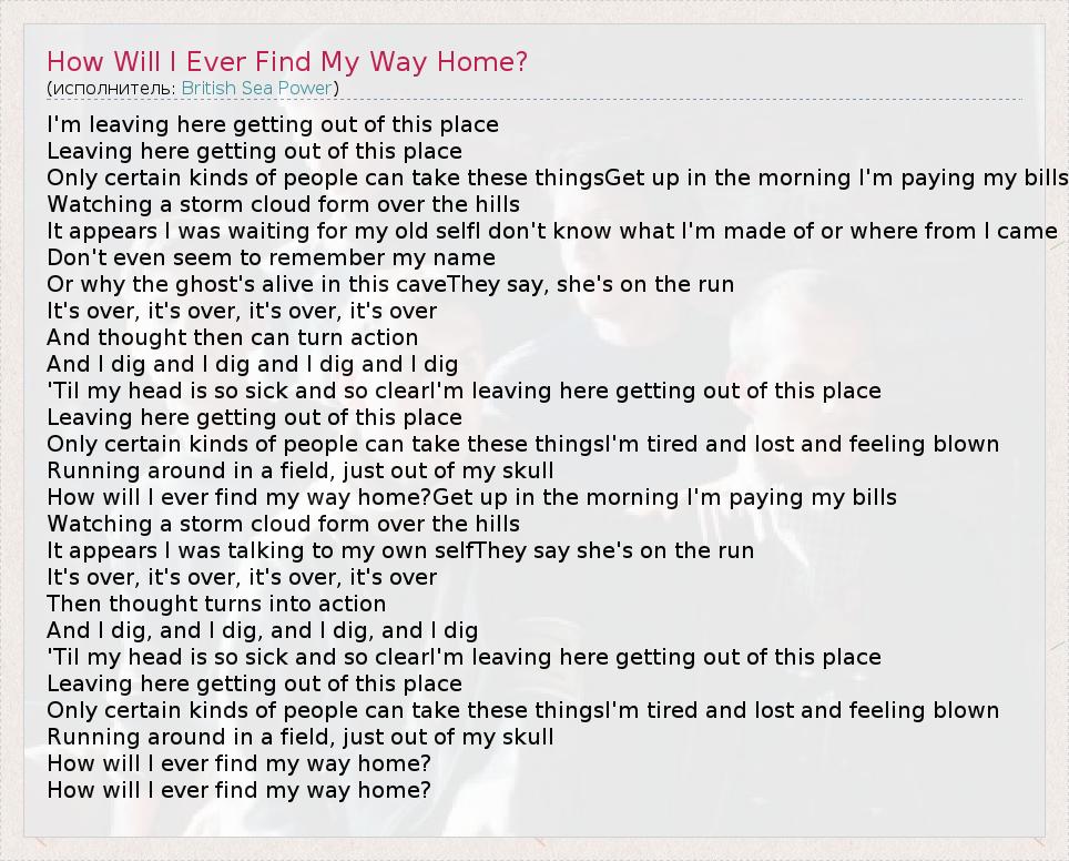 А как ты думаешь, о чем песня "How Will I Ever Find My Way Home?" ?