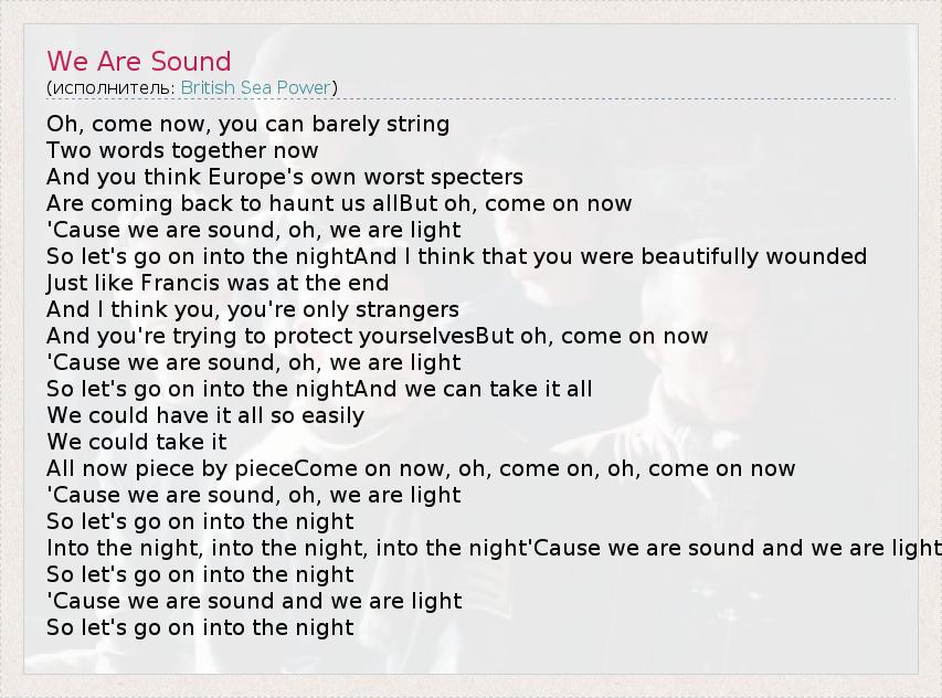 Into the night, into the night, into the night'Cause we are sound and we are light