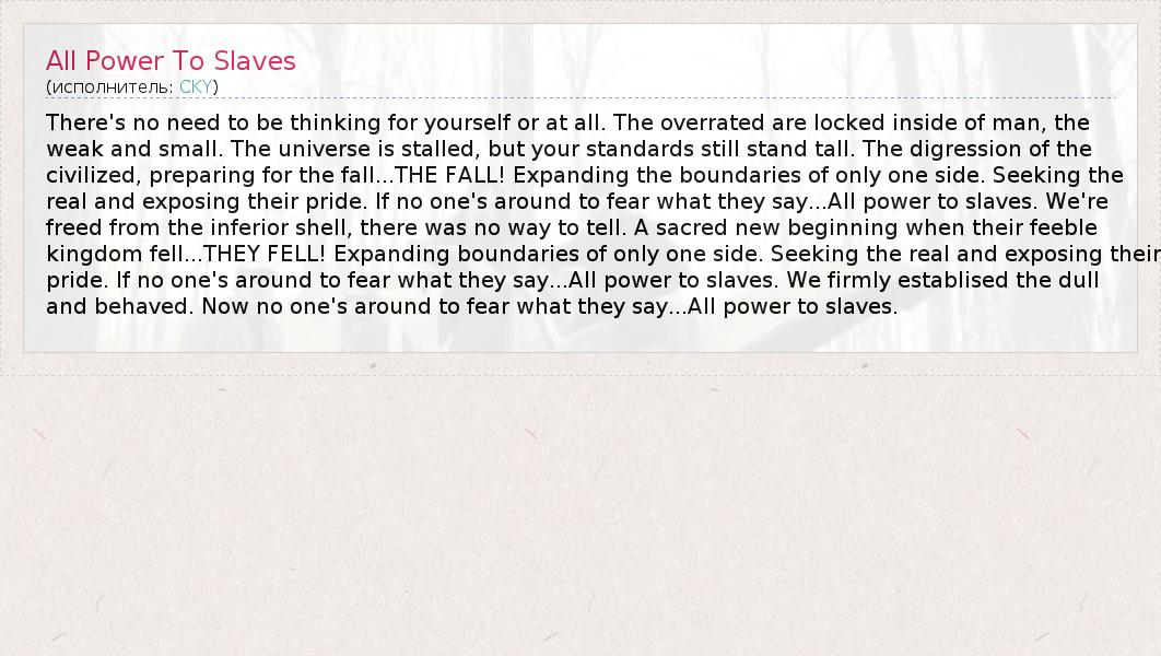 А как ты думаешь, о чем песня "All Power To Slaves" ?