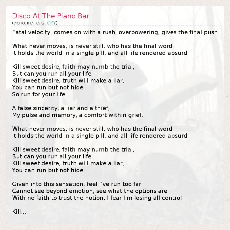 А как ты думаешь, о чем песня "Disco At The Piano Bar" ?