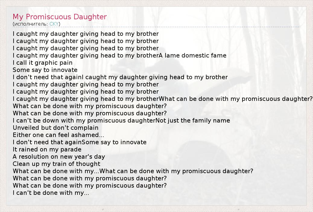 А как ты думаешь, о чем песня "My Promiscuous Daughter" ?