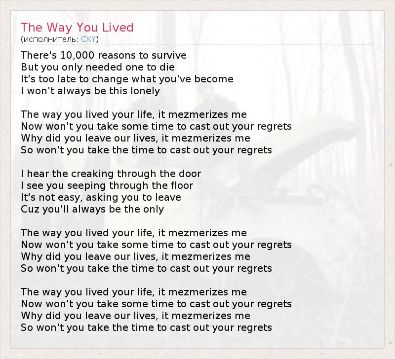 А как ты думаешь, о чем песня "The Way You Lived" ?