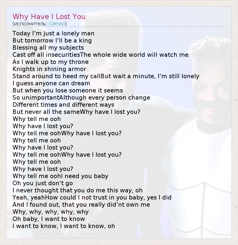 А как ты думаешь, о чем песня "Why Have I Lost You" ?