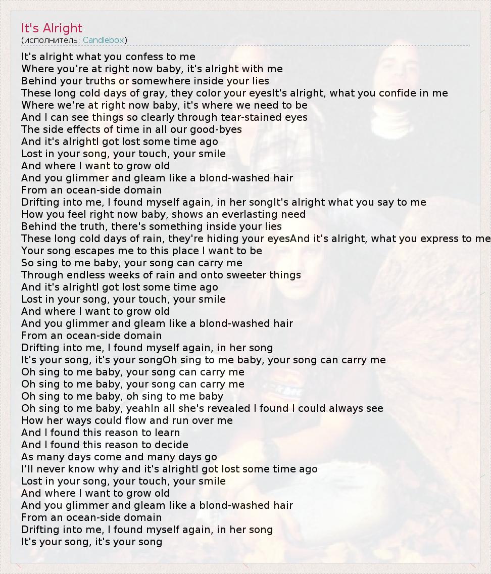 А как ты думаешь, о чем песня "It's Alright" ?