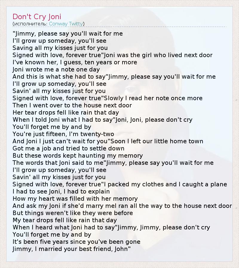 When I told Joni what I had to say"Joni, Joni, please don't cry