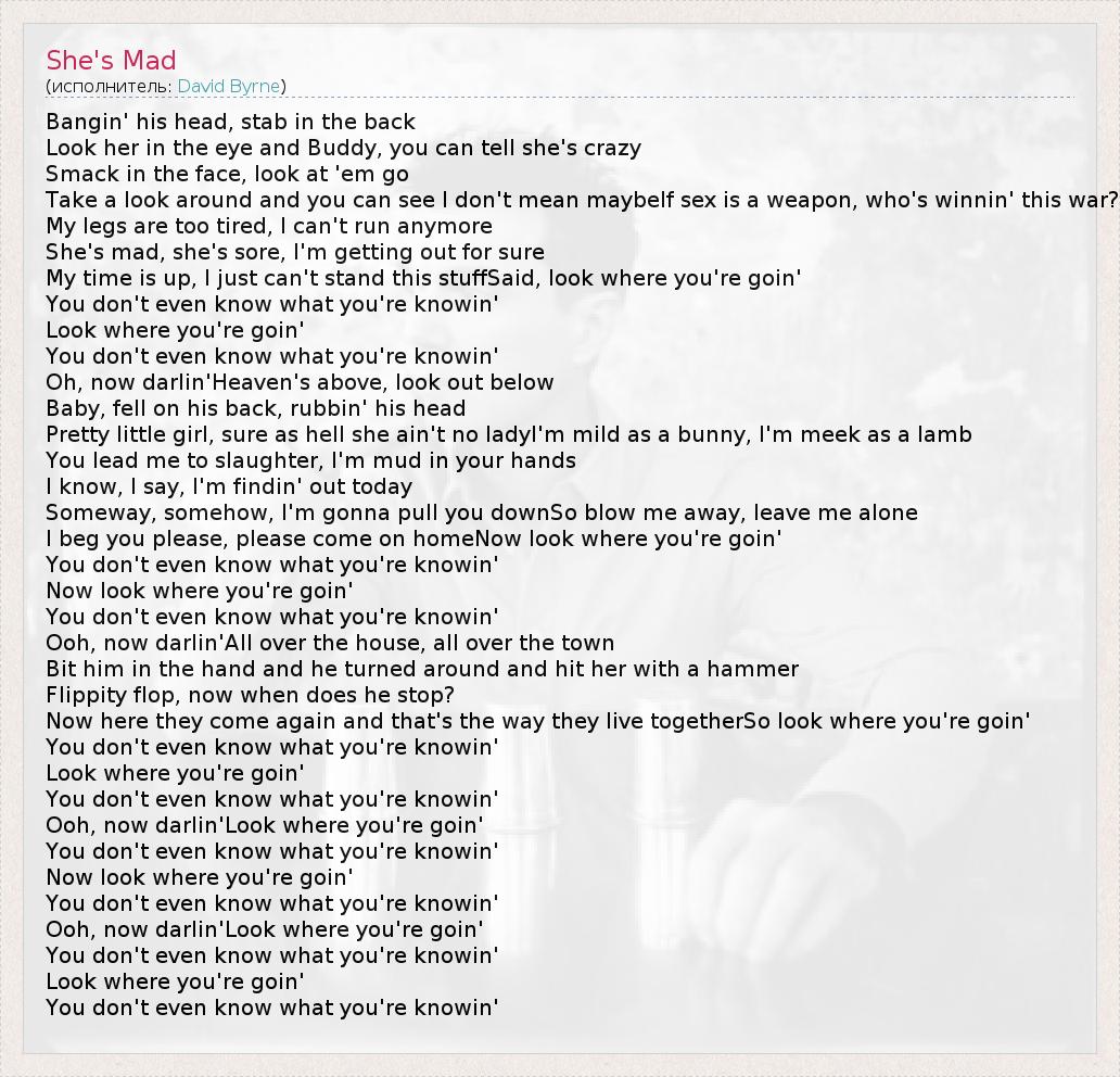 А как ты думаешь, о чем песня "She's Mad" ?