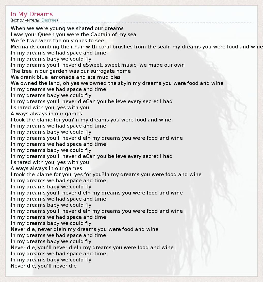 А как ты думаешь, о чем песня "In My Dreams" ?