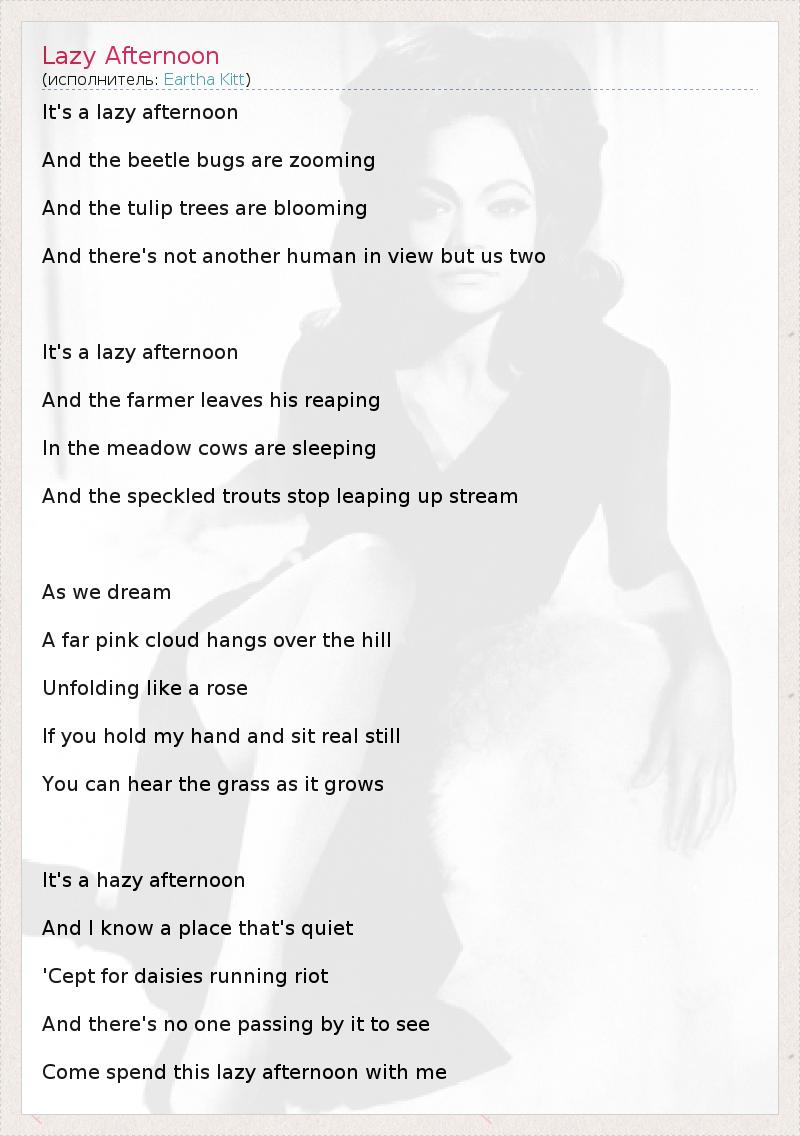 А как ты думаешь, о чем песня "Lazy Afternoon" ?