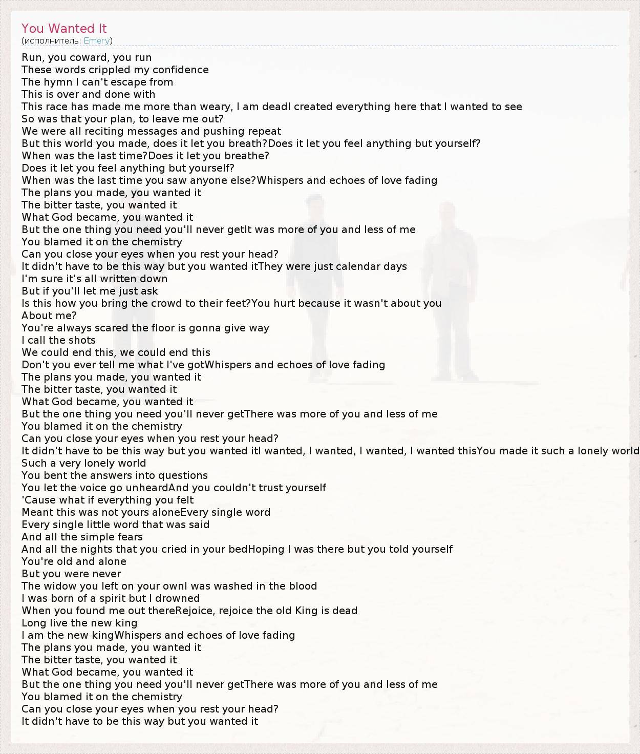 А как ты думаешь, о чем песня "You Wanted It" ?