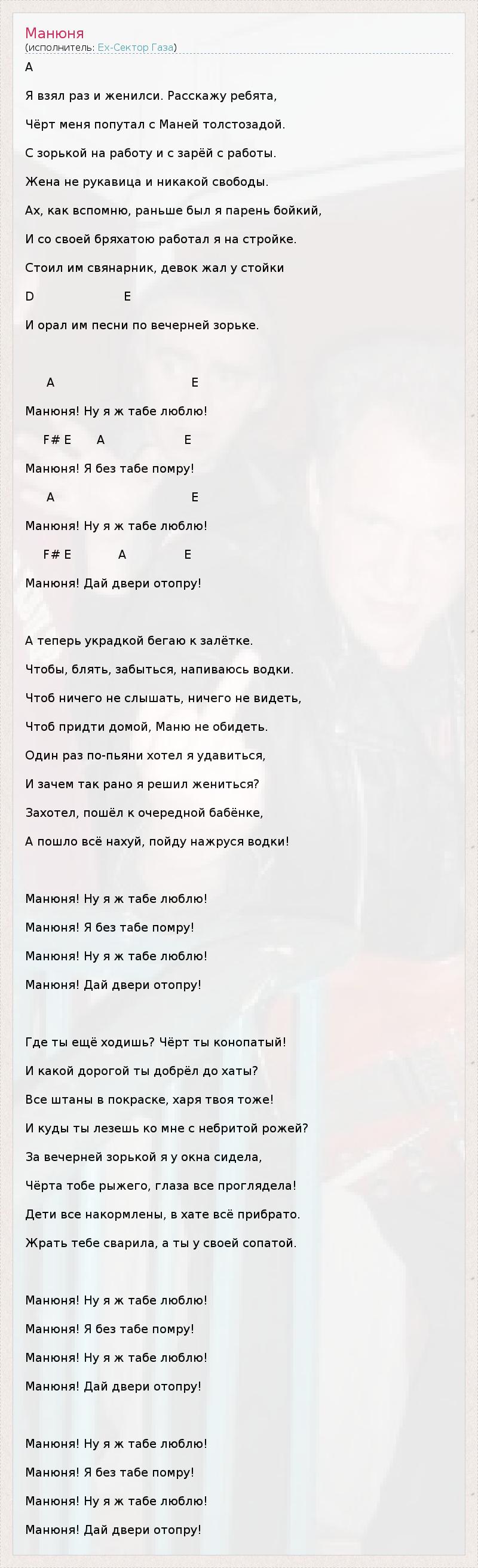 Это интересно:Группа "ex-Сектор Газа" образована осенью 2000 года. В состав группы вошли Игорь Кущев - первый гитарист Сектора Газа (который был вновь приглашён в Сектор Газа незадолго до смерти Юрия Хоя), вокалистка Татьяна Фатеева (известная по альбомам "Зловещие мертвецы", "Ядрёна вошь" и "Гуляй, мужик!") и два приглашённых музыканта. Под продюcсированием арт-директора компании "Gala... продолжение