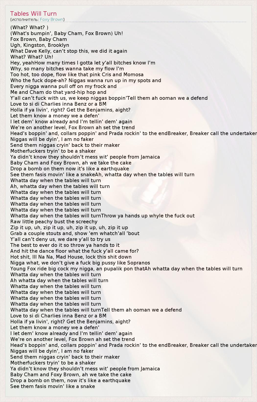 (What's bumpin', Baby Cham, Fox Brown) Uh!