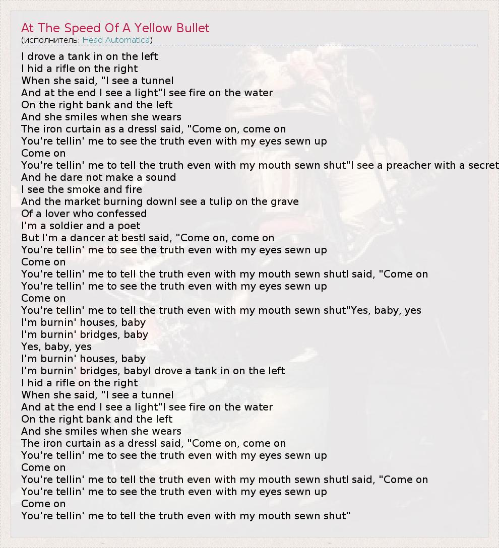 А как ты думаешь, о чем песня "At The Speed Of A Yellow Bullet" ?