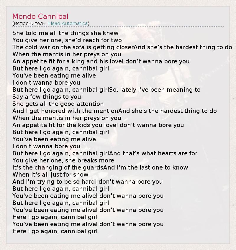 А как ты думаешь, о чем песня "Mondo Cannibal" ?