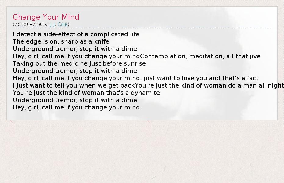 А как ты думаешь, о чем песня "Change Your Mind" ?