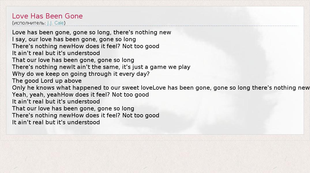 А как ты думаешь, о чем песня "Love Has Been Gone" ?