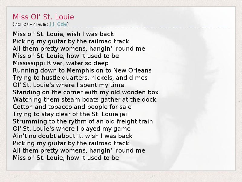 А как ты думаешь, о чем песня "Miss Ol' St. Louie" ?