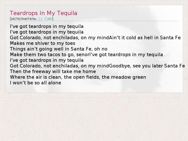 А как ты думаешь, о чем песня "Teardrops In My Tequila" ?
